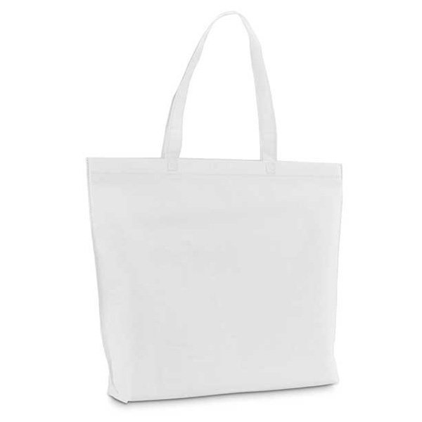 Sacola. Non-woven: 80 g/m². Termo-selado. Alças de 55 cm. 480 x 380 x 85 mm