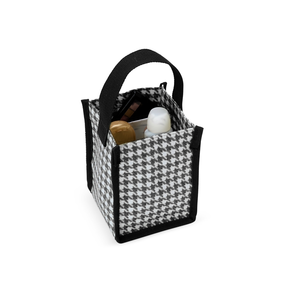 Descrição: A nossa sacola compacta estampada é a combinação perfeita de elegância e praticidade. Feita em poliéster, com um charmoso padrão pied-de-poule, ela traz um toque clássico e sofisticado. Funcional, é ideal para levar aqueles itens que podem facilmente se perder em bolsas maiores no dia a dia. Sua alça permite transportá-la para qualquer lugar com conforto. Um acessório pequeno no tamanho, mas grande na versatilidade de transformar qualquer visual.
