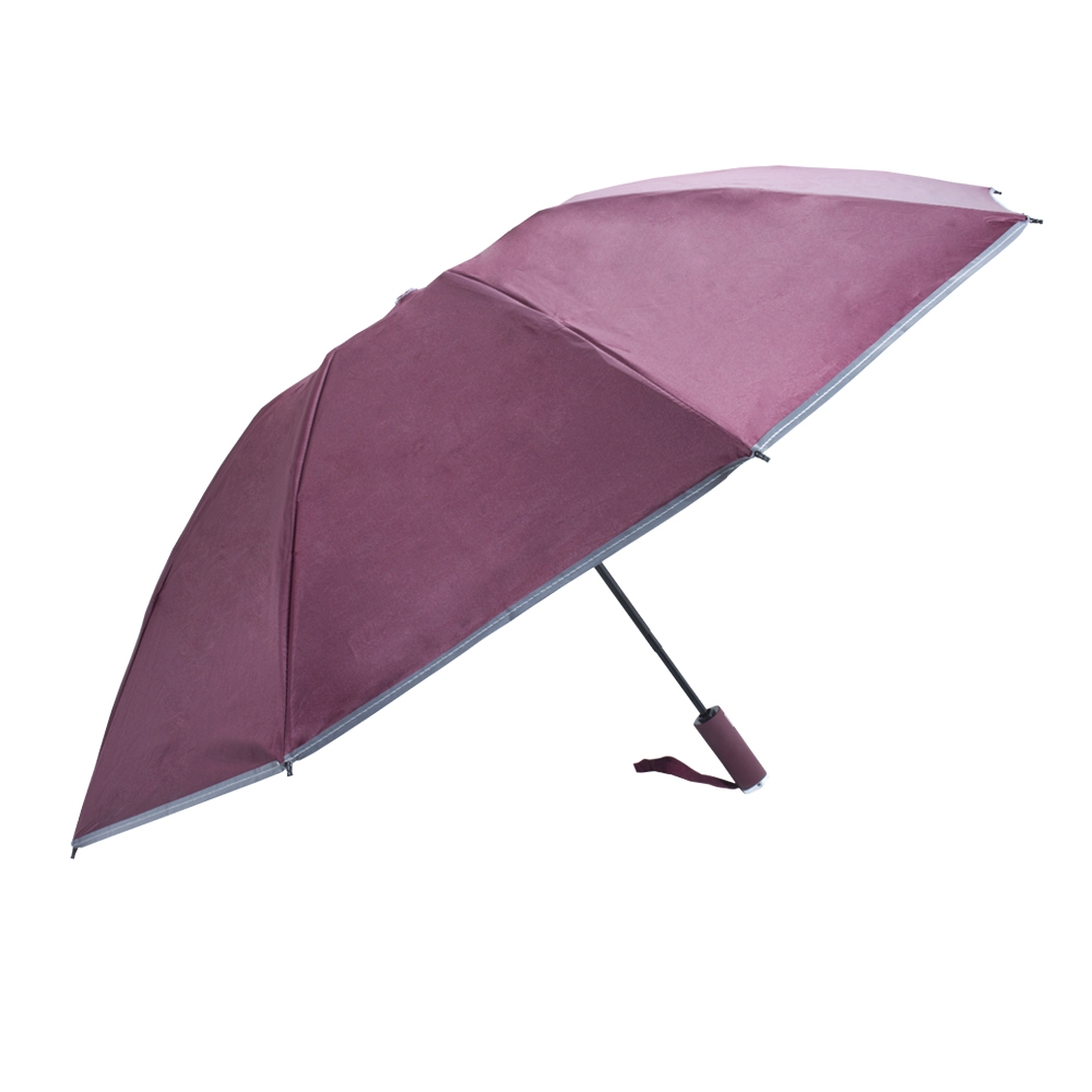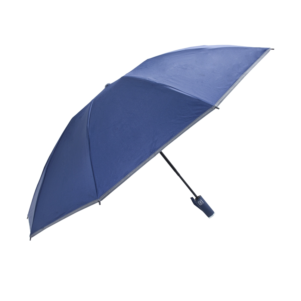 Descrição: Guarda-chuva automático de poliéster de impacto impermeável com bordas refletivas, possui estrutura em aço e 10 varetas em fibra de vidro. Possui pegador plástico com botão acionamento e alça de nylon para transporte. Acompanha capa de proteção.