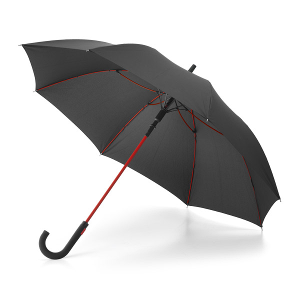 Guarda-chuva. Poliéster 190T. Varetas em fibra de vidro e pega revestida a borracha. À prova de vento. Abertura automática. ø1040 mm