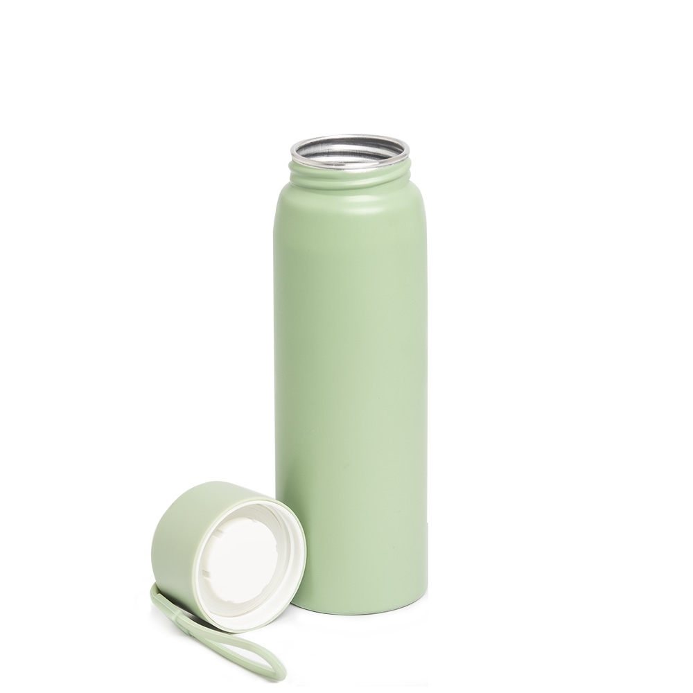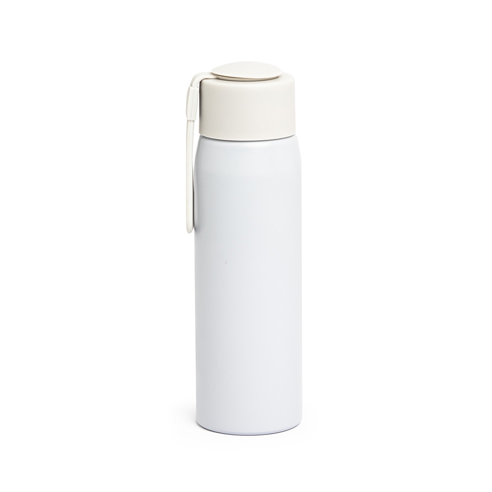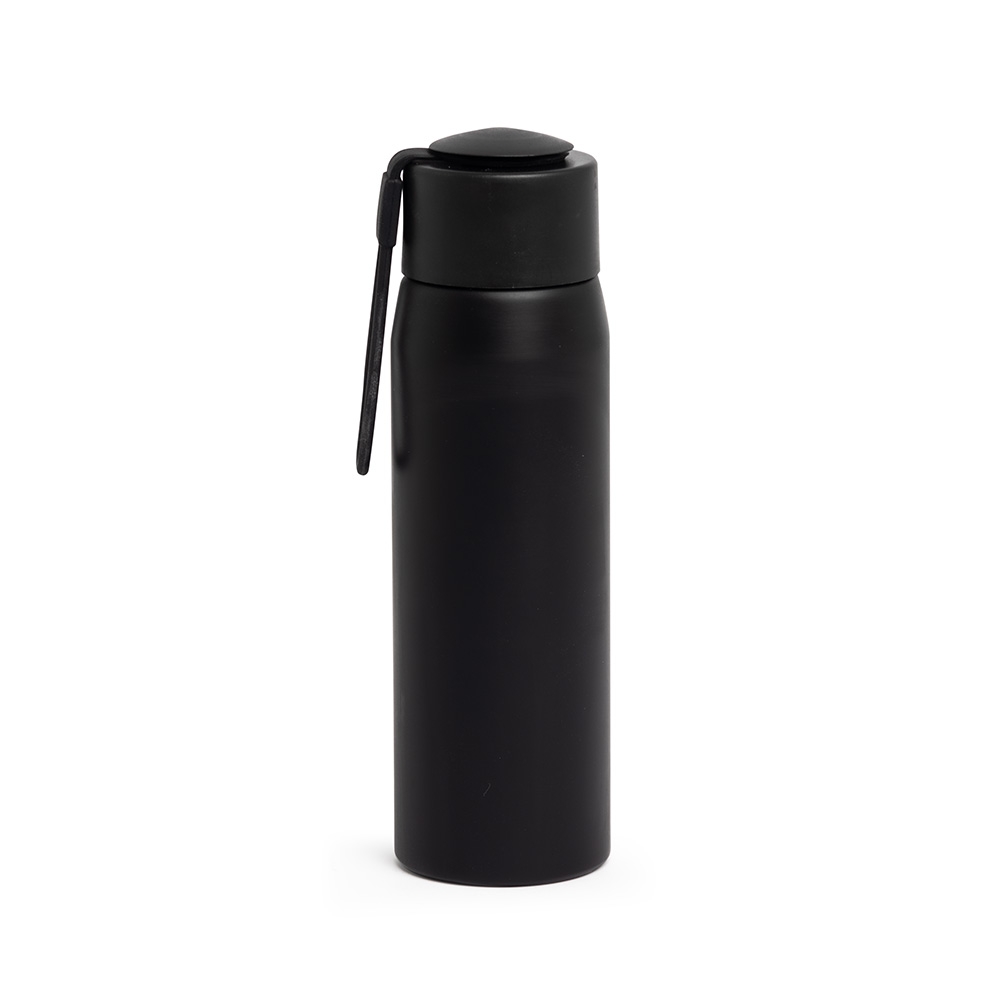Descrição: Garrafa alumínio 600ml com acabamento fosco. Possui tampa rosqueável com alça para transporte.