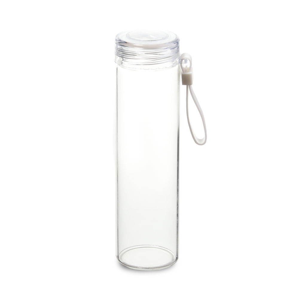 Descrição: Garrafa de vidro borossilicato 500ml. Contém tampa rosqueável e alça de silicone.