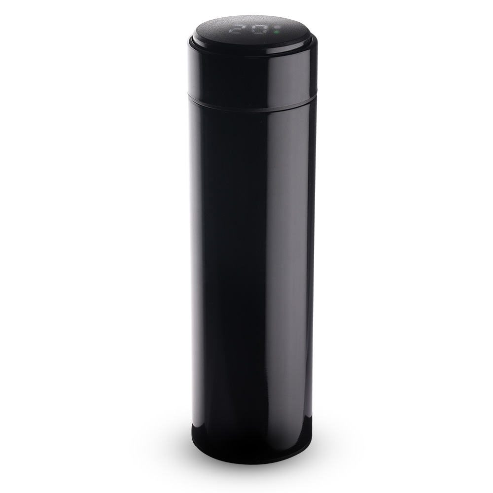 Garrafa em aço inox parede dupla 450ml com infusor, Display LED com termômetro digital na tampa para indicar a temperatura do líquido, Conserva quente ou frio.