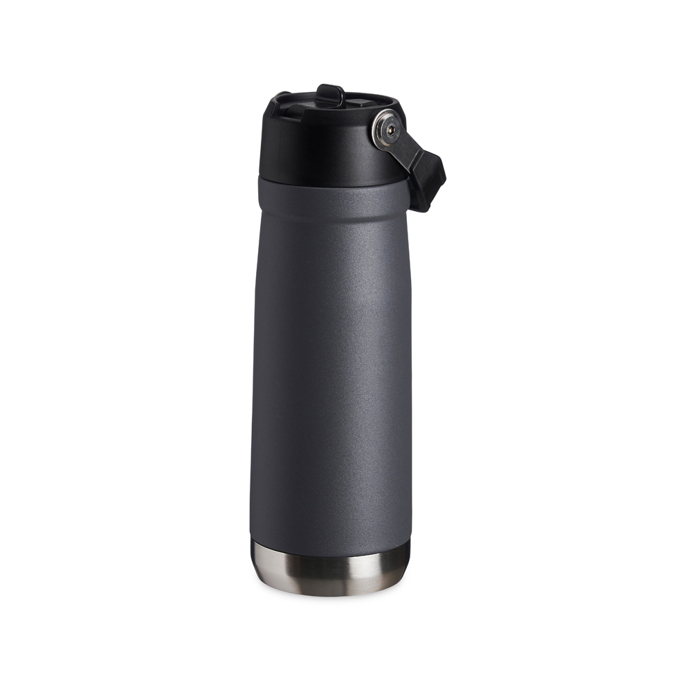 Descrição: Garrafa térmica de parede dupla em inox, capacidade de 650ml. Tampa com alça de transporte, bico flip e canudo interno.