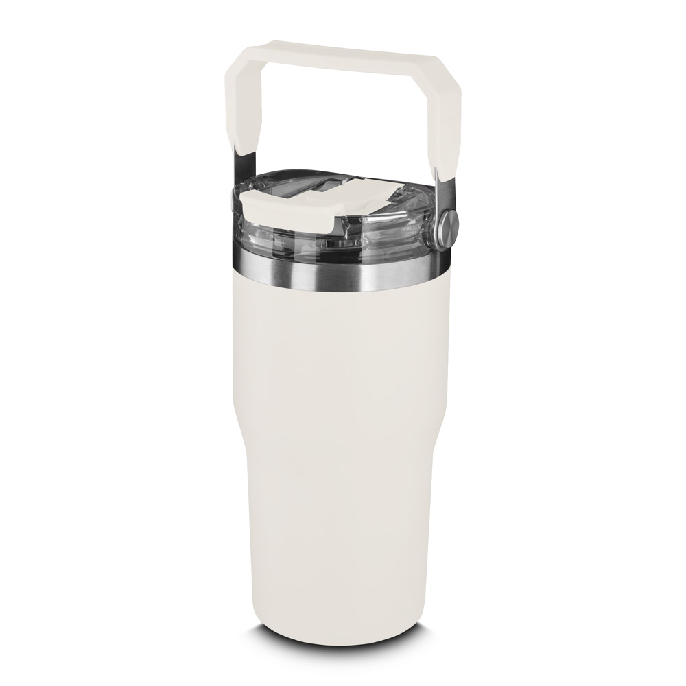Garrafa térmica em aço inox com parede dupla com capacidade de até 650ml,tampa rosqueável com alça em plástico, permite-se hidratar por canudo ou bico,com e anel de silicone para vedação.