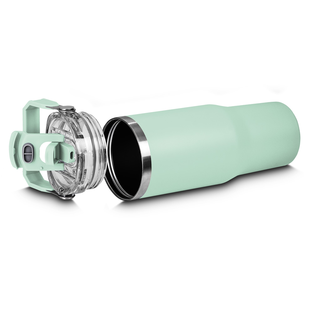 Garrafa térmica em aço inox com parede dupla com capacidade de até 950ml,tampa rosqueável com alça em plástico, permite-se hidratar por canudo ou bico,com e anel de silicone para vedação.