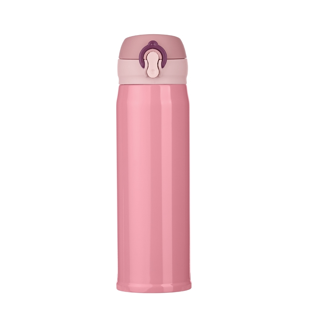 Descrição: Garrafa térmica de 400ml de inox colorida com botão e válvula para abertura. Possui um sistema de trava (basta mover para cima/baixo para abrir/fechar), pressione o botão central para abrir a tampa(possui na parte interna borracha protetora evitando vazar o líquido). Para abrir a tampa por completo basta rosqueá-la, parte interna revestida em inox. Na embalagem do produto pode ir especificado a capacidade de 450ml ou 500ml devido aos fabricantes que trabalham terem impresso a descrição deste modo, porém ressalvamos a capacidade correta de 400ml.