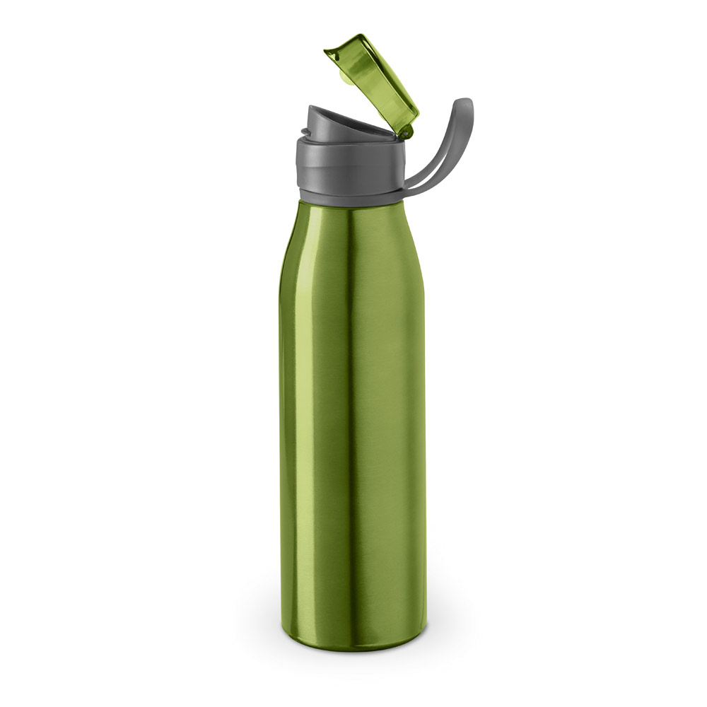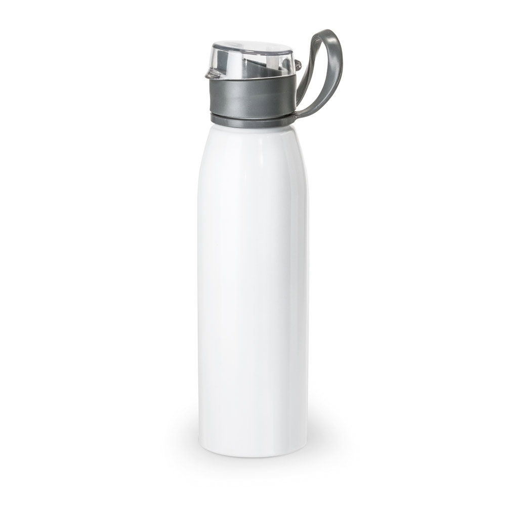Squeeze em alumínio e com tampa flip top em AS e alça para facilitar o transporte. Capacidade até 650 ml. Food grade. Caixa branca 94657 vendida opcionalmente. ø66 x 250 mm