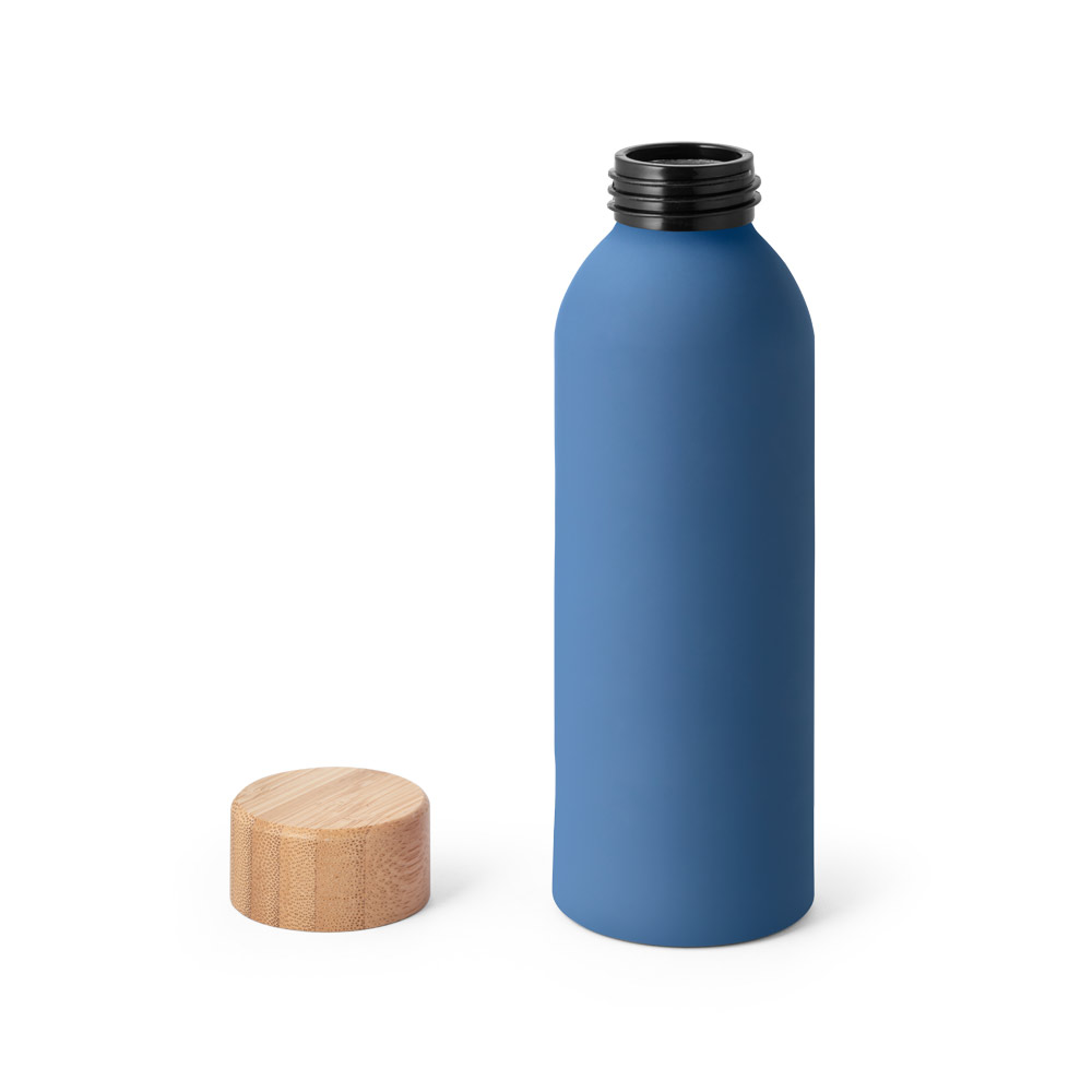 Squeeze em alumínio com acabamento emborrachado e tampa em bambu. Capacidade até 550 ml. Food grade. Caixa branca 94656 vendida opcionalmente. ø65 x 197 mm