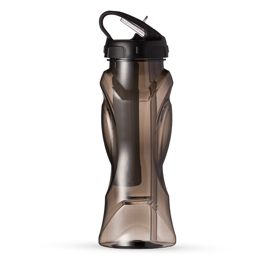 Squeeze plástico 600ml. Possui tampa rosqueável com detalhes em relevo, bico plástico com canudo interno. NÃO ACOMPANHA ICE BAR.