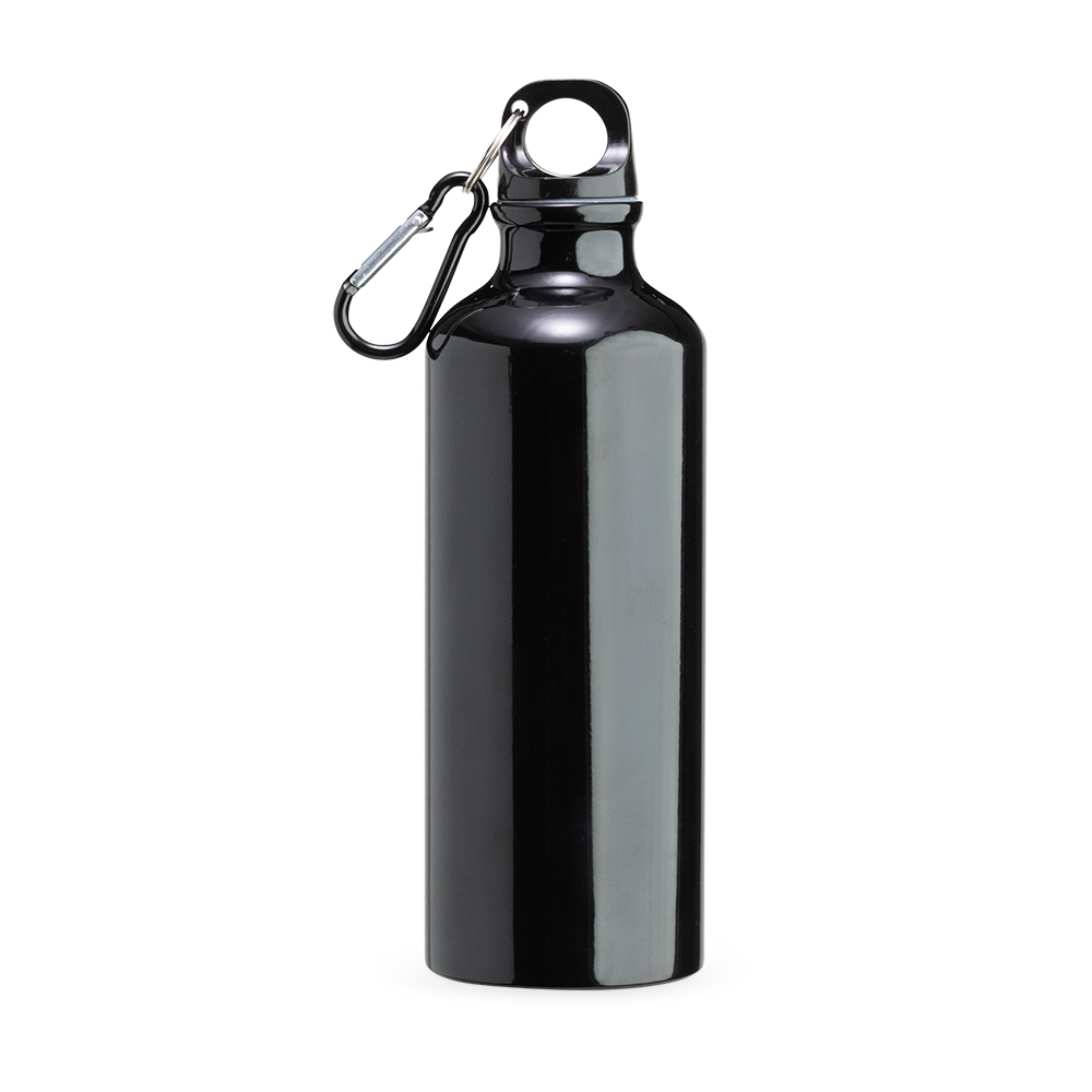 Descrição: Squeeze 500ml de alumínio com pintura metalizada, tampa rosqueável e acompanha um segundo bico com mosquetão (não é térmico).