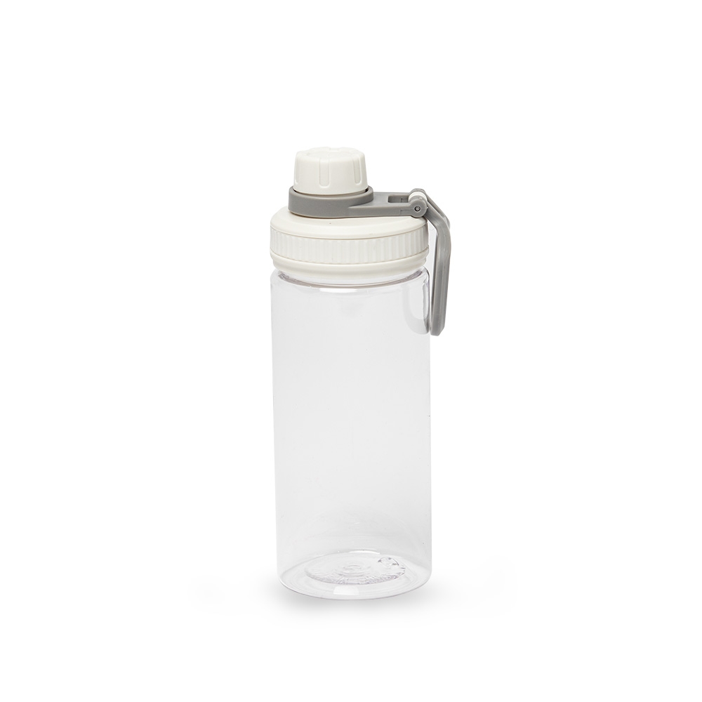 Descrição: Squeeze plástico com capacidade de 500ml. Possui tampa rosqueável com tampa protetora para bocal e alça para transporte.