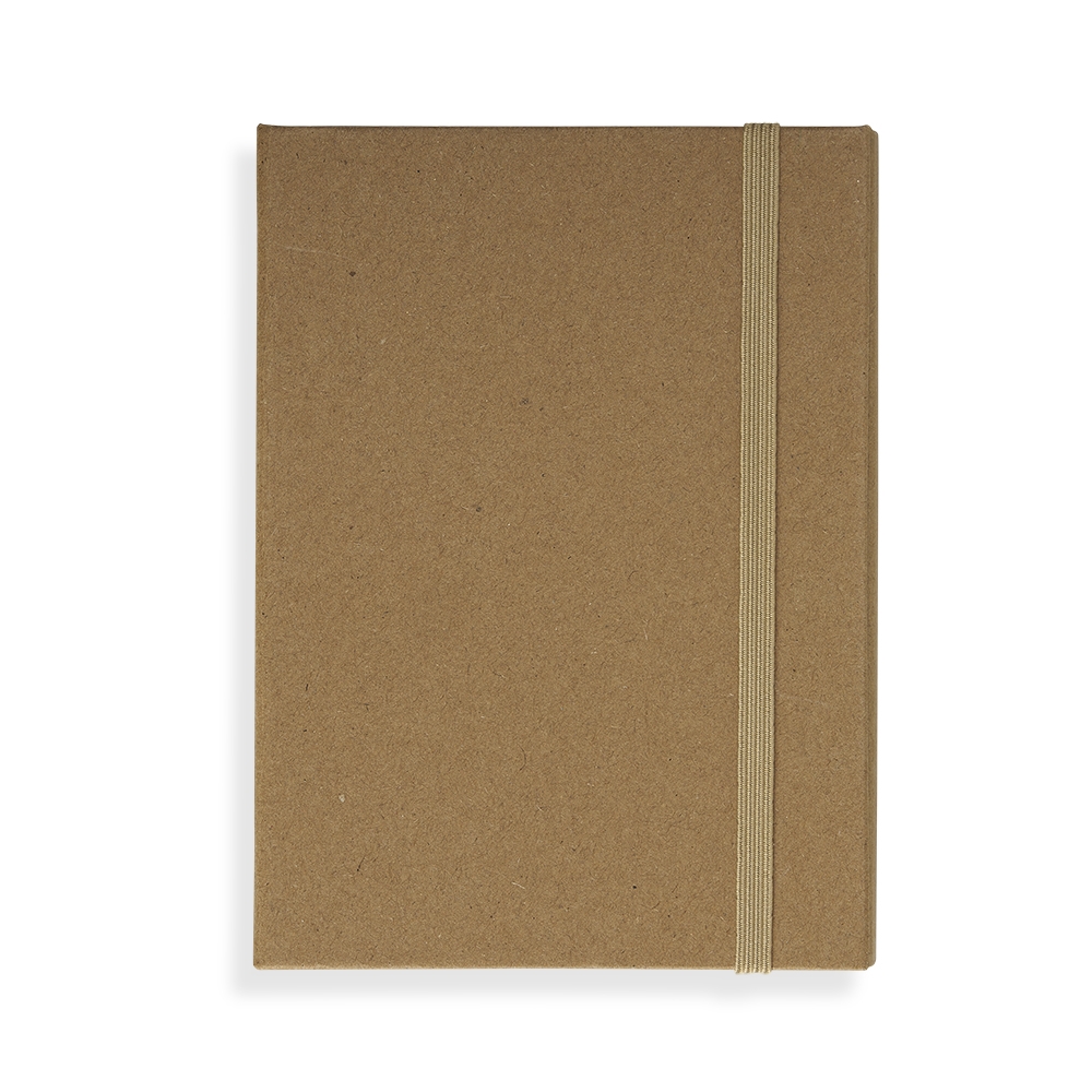 Descrição: Bloco de anotações em papel kraft pautado em kraft, possui notas autoadesivas, compartimento para guardar anotações, uma régua em material plástico de 12 cm e caneta. Obs.: O bloco possui aproximadamente 70 folhas.