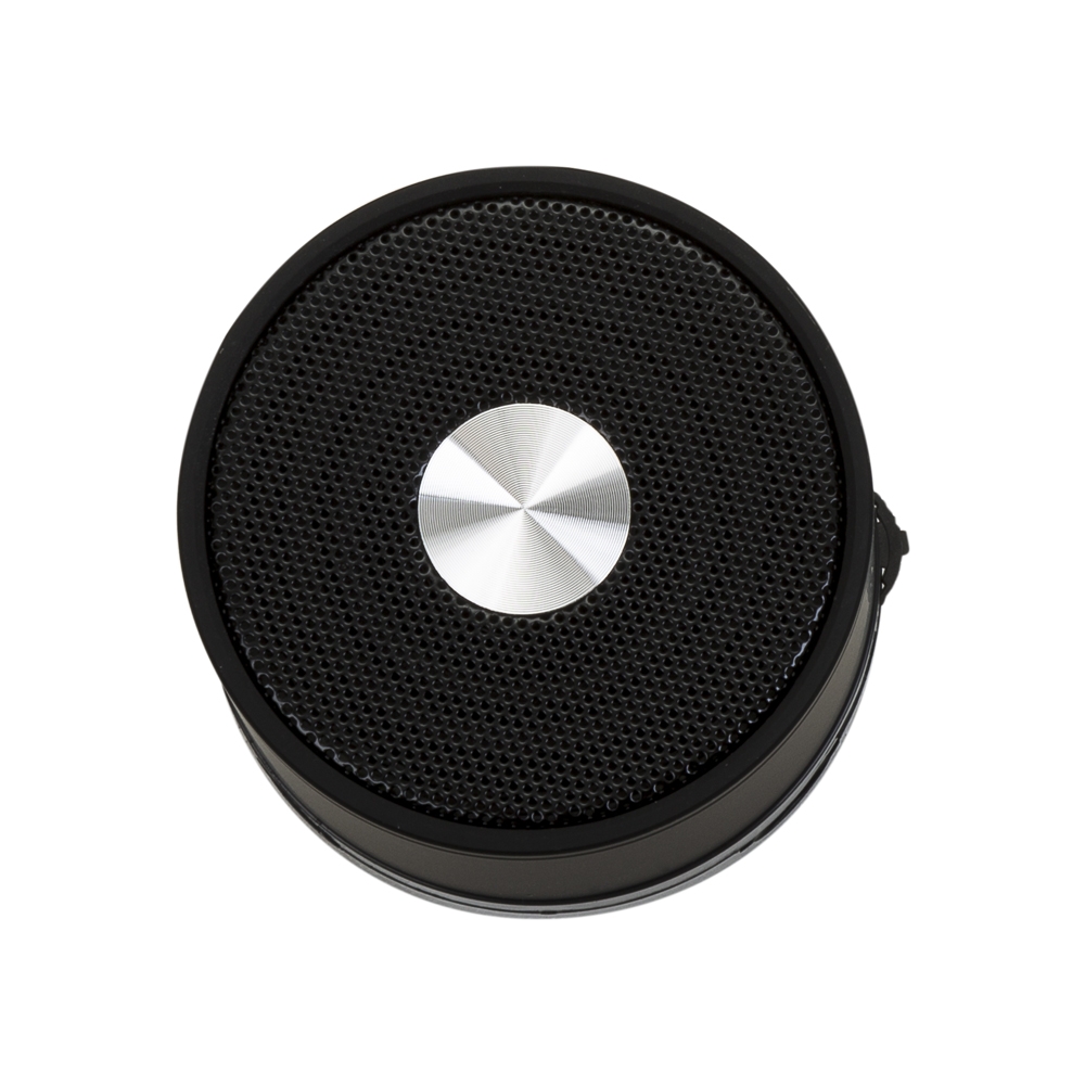 Caixa de som multimídia com Bluetooth e rádio FM. Material plástico resistente, possui: botão Off/On; O botão de rotação tem algumas funções: >|| ao ser pressionado serve como Play/Pause, quando segurado ele alterna entre os modos de reprodução; ao rotacionar para esquerda <<- retrocede a faixa e quando segurado diminui o volume; ao rotacionar para direita +>> avança a faixa e quando segurado aumenta o volume; entrada para cartão MicroSD; Microfone; Entrada DC 5V/AUX além de utilizada para conectar o cabo para carregamento, necessário plugar o cabo nesta entrada para conseguir a sintonização no modo rádio(quando estiver neste modo, aperte o botão >|| para o início da sintonização); Led indicando o funcionamento do item e entrada USB. Falante de 3W, possui detalhe circular prata no centro da tela/falante. Acompanha cabo USB.