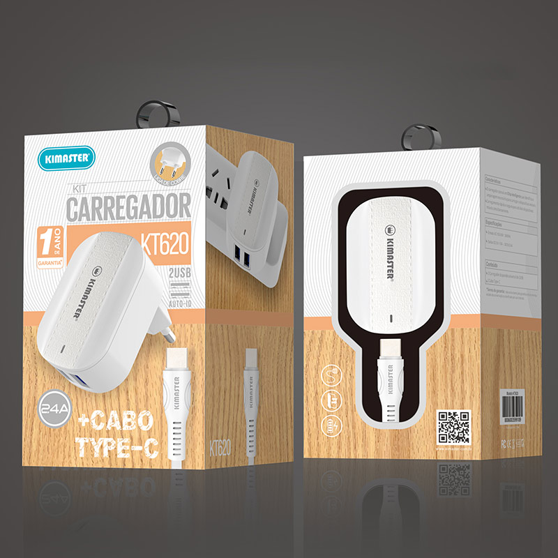 home / produtos / Tecnologia / Kit Carregador Com Cabo Type-C Kimaster - C2KT620