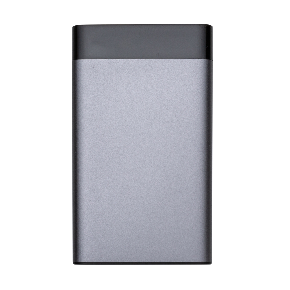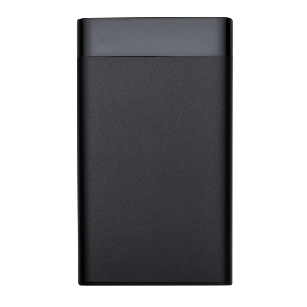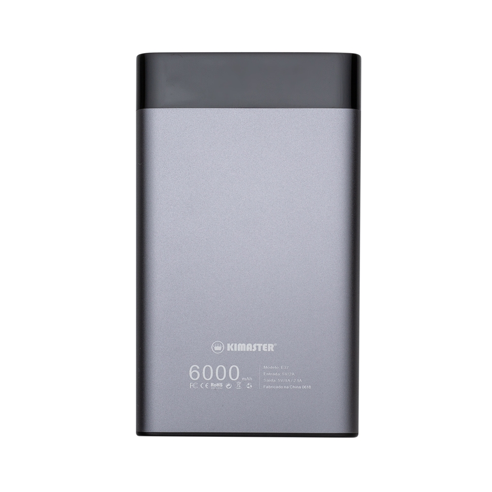 Power Bank metálico com visor digital. Possui pintura fosca e visor preto espelhado, botão power para acionar o carregador, saídas USB de DC5V-1A e DC5V-2A, entrada DC5V-2A e capacidade real de carga 3000 mAh. Acompanha cabo USB.