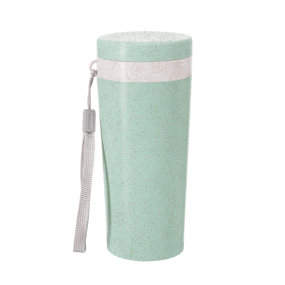Descrição: Copo fibra de bambu 350ml com parede dupla e alça. Copo produzido em Polipropileno livre de BPA, possui uma tampa de vedação rosqueável e alça de nylon (removível) para transporte. Conserva a temperatura interna durante um período de 1 à 2 horas, mas não dispõe de isolamento térmico. O copo pode ser levado a lava-louças, geladeiras e micro-ondas.