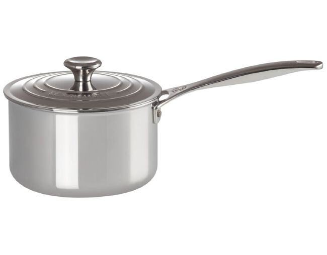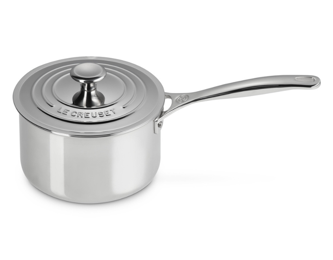 A Panela Molheira 3-Ply da Le Creuset apresenta um design refinado perfeita para fazer molhos, mas também acompanhamentos, preparar grãos, escaldar, ferver e reaquecer. Radiante e durável, a construção de camada tripla apresenta um núcleo de alumínio da base ao aro para distribuição de calor superior, enquanto o exterior leve de aço inoxidável com infusão de titânio resiste a queimaduras e corrosão em temperaturas mais altas. Detalhes inovadores, como marcações de capacidade interna, icônica tampa de três anéis com saídas de vapor integradas e um aro sem gotejamento economizam valioso tempo de preparação e tornam a limpeza mais fácil.