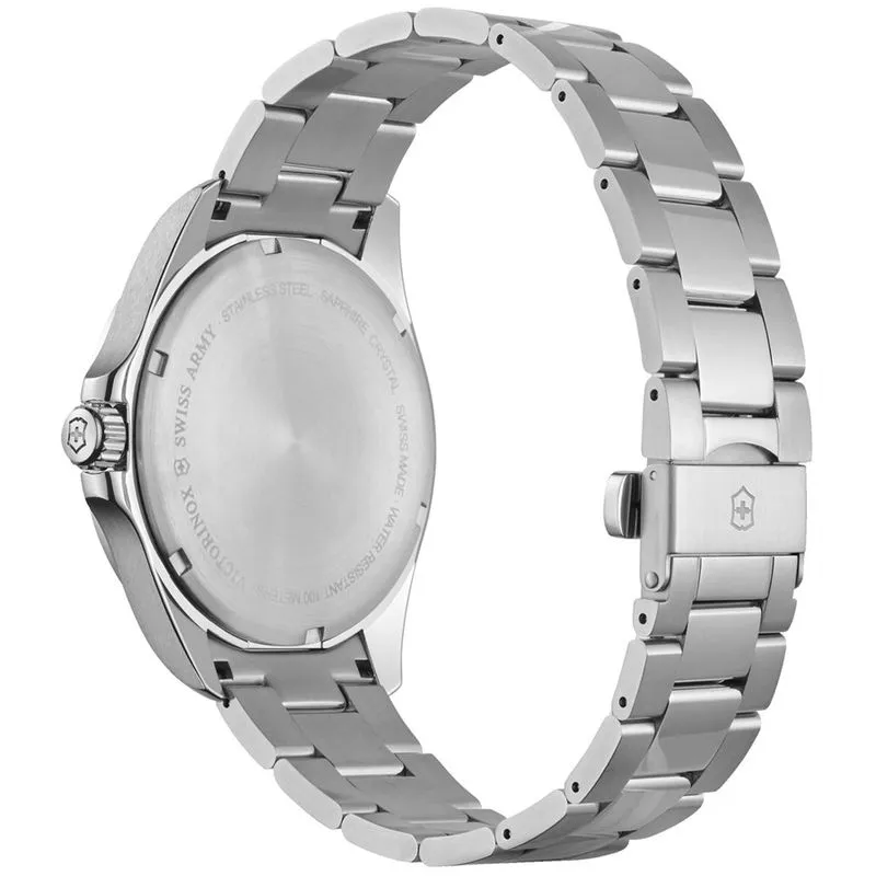 A garantia exclui a vida útil da bateria, o desgaste normal (alterações de cor nas pulseiras, arranhões no mostrador, no bezel, na pulseira ou na caixa), manuseio impróprio e também danos provenientes de uso indevido, mau uso, acidentes ou reparo não autorizado. A garantia internacional é válida somente se o cartão de garantia estiver devidamente preenchido, datado e carimbado por um revendedor autorizado da Victorinox Swiss Army. O fabricante limita a respectiva garantia ao reparo e à troca. A legislação de outros países pode conceder outros direitos.