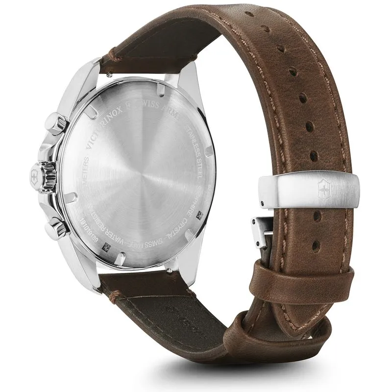 Tenha coragem para ousar com o relógio que busca ultrapassar novas fronteiras. Ampliando o DNA do canivete do exército suíço, este design aprimorado é luxuoso, porém claramente masculino. Cores refinadas e índices curvados fazem uma declaração de estilo, enquanto números arrojados e marcadores de bom tamanho oferecem legibilidade superior. A pulseira de couro confortável inclui uma fivela de ajuste na extremidade.