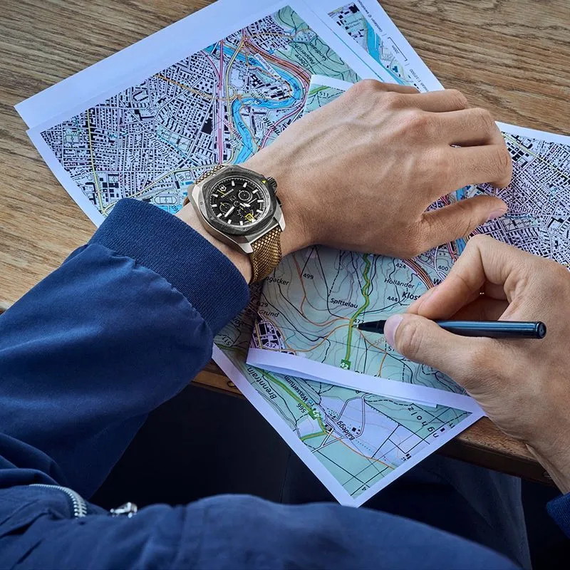 ° Uma mistura exclusiva de caixa de titânio e bezel em carbono produzido na Suíça que oferece força e leveza