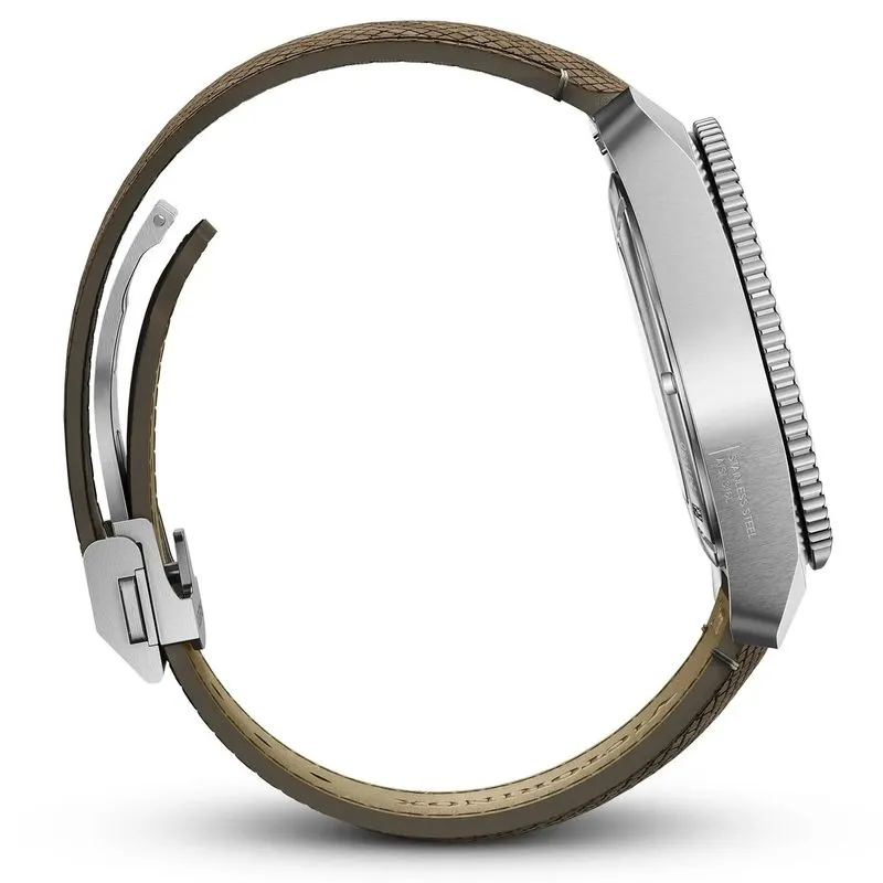 Conheça o Journey 1884 com movimento de corda automática, criado para ajudar você a navegar na paisagem urbana. Com um elegante bezel de cerâmica e lembrando as placas icônicas das trilhas suíças, ele é inspirado pela natureza, mas é perfeito para a cidade. A resistência ao choque garante o desempenho impecável, e ele vem com uma elegante pulseira de madeira e uma pulseira de borracha azul extra, além de uma carteira de acessórios para ainda mais versatilidade. Estar preparado significa que você pode tomar decisões em segundos e encarar a vida com confiança.