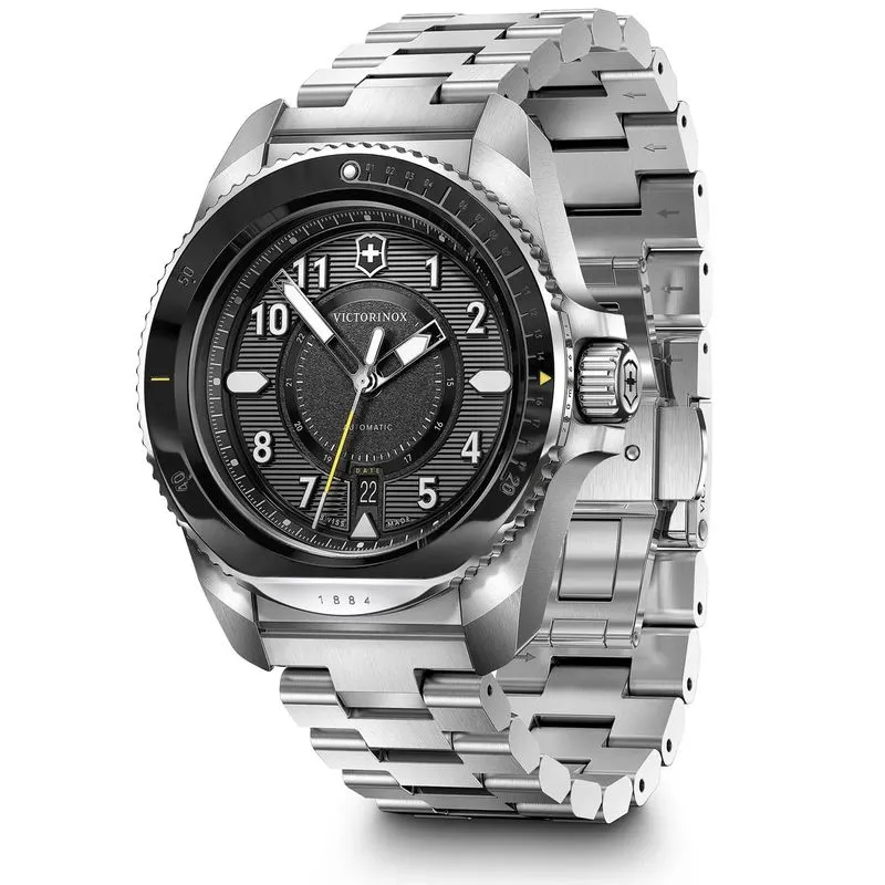 Com tecnologia especializada e com agilidade confiável, o Journey 1884 com movimento de corda automática potencializa jornadas urbanas com perfeito equilíbrio. Exibindo recursos de design inteligente, como o bezel de cerâmica, os formatos inspirados no canivete do exército suíço e o código de material gravado industrial, esse é um companheiro de pulso inigualável. Ele vem com uma pulseira de aço inoxidável masculina que exala confiança e estilo.