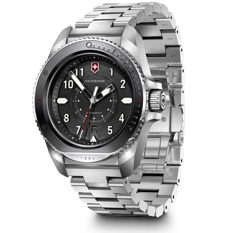 Estar em sintonia com seu ambiente significa que você pode responder e se adaptar rapidamente. O Journey 1884 com movimento de quartzo analógico foi projetado como uma homenagem ao mundo natural e seu DNA de engenharia. Com seu revestimento antimagnético para proteger o movimento da eletropoluição, você pode confiar em sua precisão em qualquer ambiente, e a pulseira de aço confere um visual forte. Refletindo suas raízes industriais no acabamento, com a data de 1884 gravada e formas inspiradas no canivete suíço, ele o guiará em sua jornada com ousadia, à maneira suíça